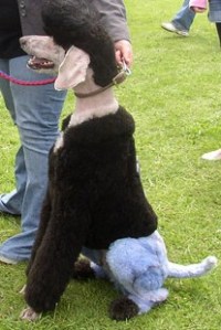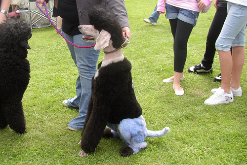 Dignity, hah! If we wanted them to keep their dignity we wouldn’t have turned them into shivering, bug-eyed, cowering rat stencils. Dogs threw dignity to the wolves when they decided to hang with us. If Lhasa Apsos and Bichon Frises held on to dignity they would be eternally depressed to look like a cloud that stuck its tongue in the toaster in the first place, but they are totally happy, dofusey creatures and we love them for it. No, a poodle don’t know a panda from a poop.