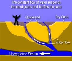 In quicksand, there must be an underground water source. Flowing water from below is pushed upwards, agitating and liquifying the sand above. The particles are forcibly separated and not only can’t support weight, but anything pulled out of it creates a vacuum from below.